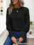 Long Sleeve Embroidered Lace Splicing Waffle Crew Neck Top m302245