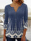 Printed V-neck short sleeve pleated button T-shirt bottoming shirt m300032