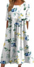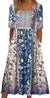 Ladies Casual Crew Neck Pullover Short Sleeve 3D Printing Pleated Waist Swing Long Dress Dress m301299