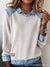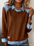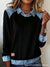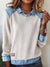 Denim collar long sleeves pullover spliced knitted sweater top m302161