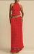 backless neck sling drawstring chiffon pleated long skirt two-piece set m301879