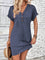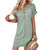 Women's Fashion Versatile Buckle V-Neck Shoulder Roll Sleeve Solid Color Dress m300945