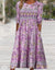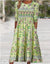 Ladies Casual Crew Neck Pullover Short Sleeve 3D Printing Pleated Waist Swing Long Dress Dress m301299