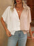 New fashion color matching cardigan buckle lead short-sleeved women's top m300998