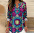3D marble shading trendy V-neck shoulder shirt curved hem long sleeve m301292