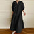 Vintage cotton and linen V-neck shirt sleeve long loose pendulum dress m300929
