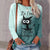 Printed cute cat long-sleeved T-shirt crew neck women's top M800017